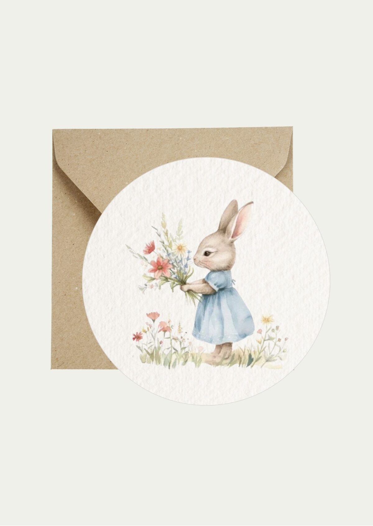Ronde kaart blanco konijntje met bloemen