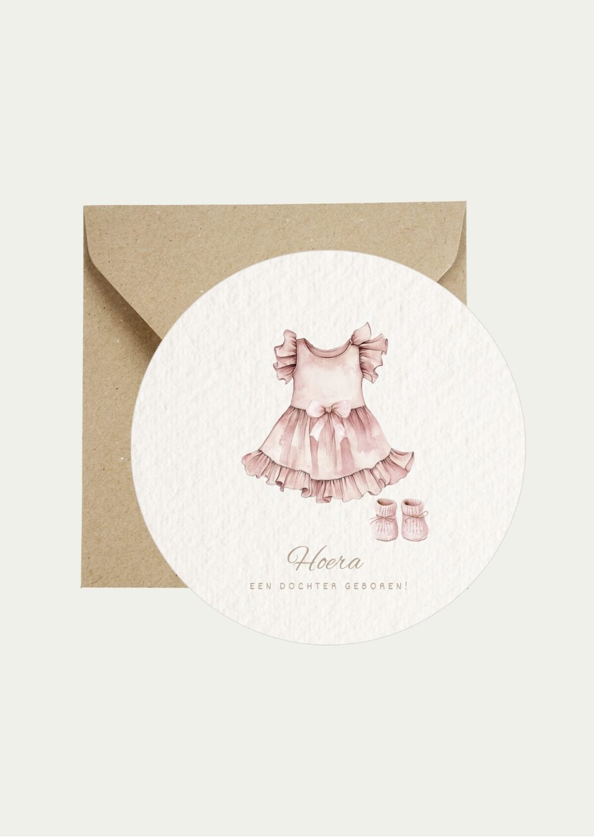 Ronde kaart geboorte dochter jurkje