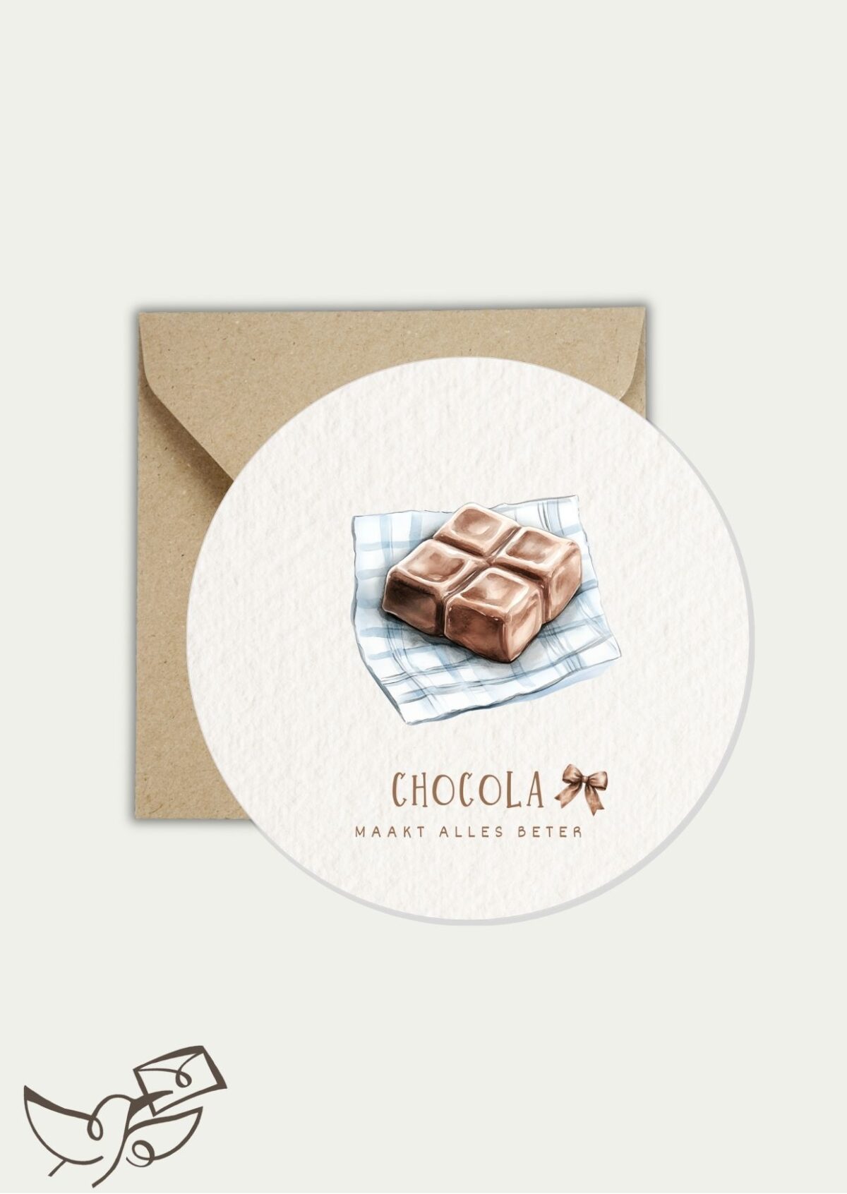 Ronde kaart chocola maakt alles beter (nieuwe papiersoort, glad en glanzend)