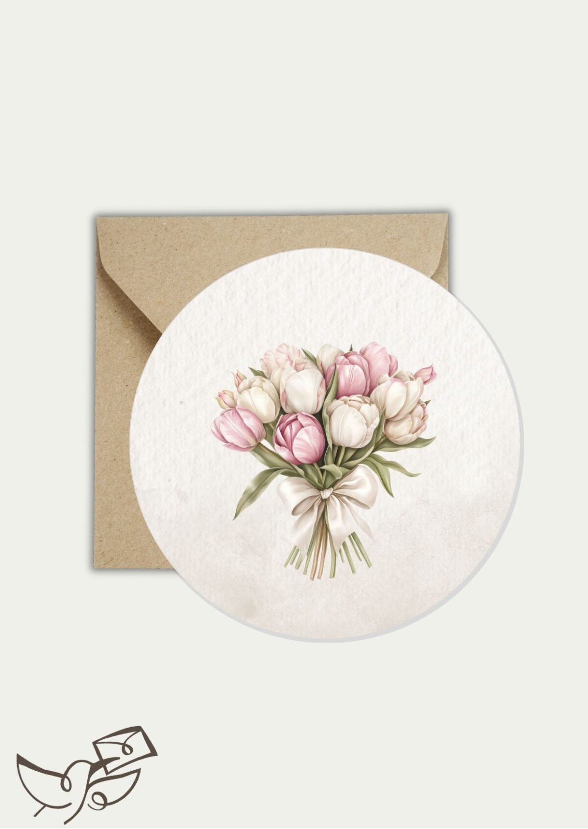 Ronde kaart blanco bosje tulpen (nieuwe papiersoort, glad en glanzend)
